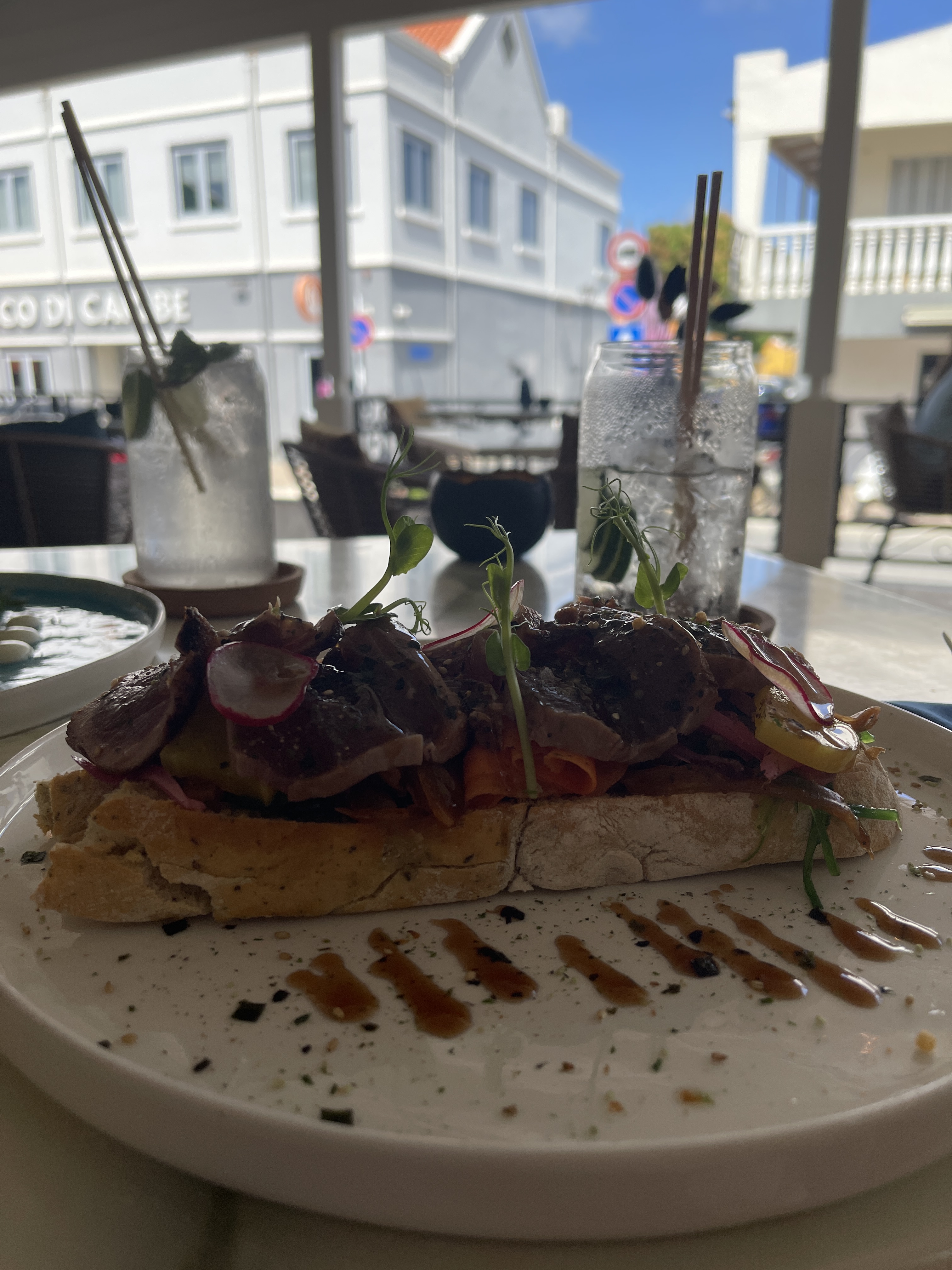 Our journey then continued around the islands southern tip spotting many flamingos on the way (which pleased The Duchess) before heading back across the island, passing the airport, where our guide proudly announced that when not a guide, he was actually a fire fighter at the airport. After that, we were eventually dropped off by the Pier Mall from where His Podgeness deftly guided The Duchess away from Diamonds Forever and up into town where we had decided to look for somewhere to eat. It didn’t take us long. We came across Number 10 and we just knew that this was the right place for us.