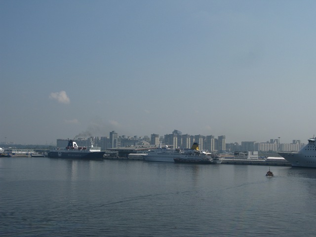 At last, we got back on board, so we headed to the bar for a much needed drink and something to eat, just to see us through to Dinner. We then retired to our cabin for a rest and a pre-dinner brandy. Sitting out on the balcony, watching the Italian ships leave (not before time) we were entertained by the sight of couple of military aircraft who seemed to be practicing for an air display. I’m tempted to say they were Migs but that’s only because I don’t know otherwise and I certainly don’t know how to spell any of the other types. But they were good what ever they were, doing loops and cross over’s, laying smoke trails and formation fly by’s. All too soon it was over and so we had to get ready for our evening meal which was to be washed down with a rather nice bottle of a Spanish White Rioca.