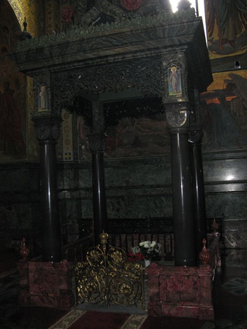 The Cathedral was built over the place where Tsar Alexander II was assassinated in 1881 when a bomb was thrown into his carriage. Where he fell fell and his blood spilt [on the cobblestones] the Cathedral was built while retaining the actual cobblestones where he fell within an alter as a memorial. The building itself is an absolute marvel golden domes, coloured spirals and textured cupolas.