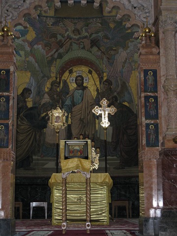 The interior is embellished with over 7000 square meters of mosaics including more than 20 types of semi-precious stones including jasper, rhodonite, porphyry and Italian marble.