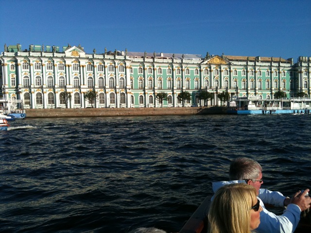 We awoke to find we had new neighbours in St Petersburg. While we were asleep two more cruise ships crept in, these being the MSC Orchestra and the Costa Atlantica. This cheered Debbie a bit as she presumed they would be full of Italians (she is a bit of a tart where Italians are concerned). With ourselves and the Jewel of the Seas already in port, this was going to make for a very busy time in town. With each ship effectively despatching 30+ coaches into the early morning rush hours we just knew it was going to be congested. Thank god therefore that we elected for an afternoon tour [to the Cathedral of Spilt Blood]. After a spot of lunch of course.