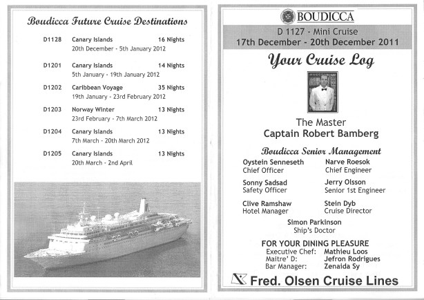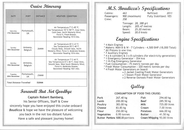 A copy of the Cruise Log for ou short three night Mini Cruise